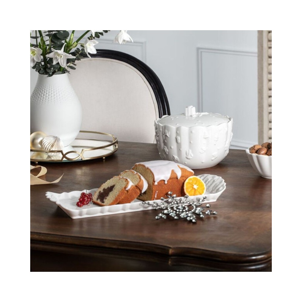 Per le prelibatezze della vostra pasticceria nataliziaToy's Delight Royal Classic incanta con accessori bellissimi e una serie di stoviglie in puro bianco classico con rilievo in porcellana di alta qualità. Questo rilievo è impreziosito da suggestivi motivi come le foglie di agrifoglio e tipici personaggi natalizi. La collezione si abbina straordinariamente bene agli articoli Toy‘s Delight con i suoi colori natalizi. Servite la vostra buonissima torta di Natale o una selezione colorata dei vostri biscotti preferiti su questo bellissimo e grande piatto da torta. Festeggiate il Natale con bellissimi articoli in uno stile classico e minimale.Dimensioni: 40 x 16 cm