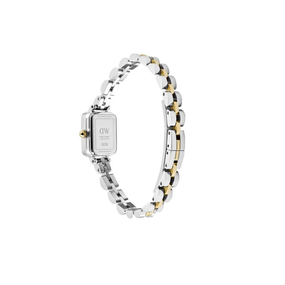 La mini cassa rettangolare incornicia un quadrante bianco con finitura a raggio di sole e senza indici, che trasmette calma e raffinatezza. Le superfici bicolore argento e oro creano un delicato contrasto, perfetto per tutti i giorni. Per chi preferisce orologi di piccole dimensioni con un tocco di gioiello, questo orologio rettangolare da donna color oro coniuga semplicità e carattere.