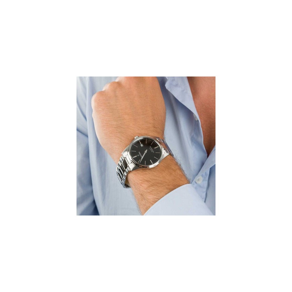Orologio Festina Classic da uomo con cassa acciaio Inossidabile 316l, dimensioni 39.3 mm, colore del quadrante nero con uno spessore della scatola di 8.25 mm, cristallo minerale, dotato di Bracciale in acciaio. Movimento al Quarzo. Tipo di chiusura ad ardiglione, Resistenza all'acqua 5 bar (50 metri)