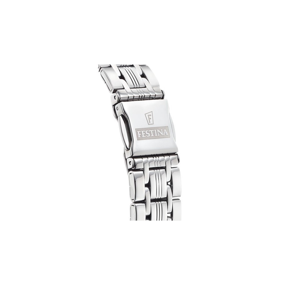 Orologio Festina da donna 32mm Con cassa in acciaio Spessore della cassa 8.4 mm, vetro minerale colore del quadrante argento con all'interno del quadrante zirconi, movimento al quarzo, cinturino in acciaio con chiusura deployanne, Impermiabile fino a 5 bar (50 metri)