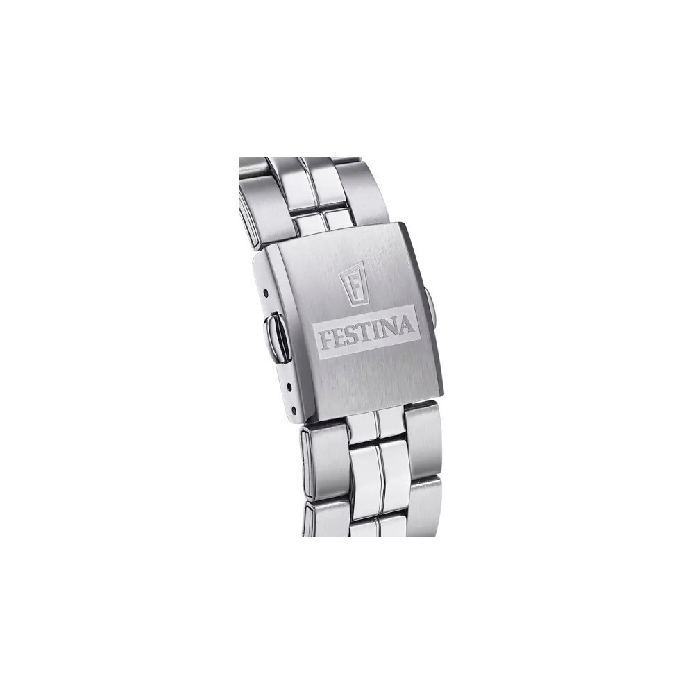 Orologio Festina Classic da uomo 40mm con cassa in Acciaio Inossidabile 316l, con uno spessore di 9,1mm, vetro minerale, colore del quadrante nero e lancette argento, impermiabile fino a 10 bar (100metri), movimento al quarzo, il cinturino è in acciaio con chiusura deployante.