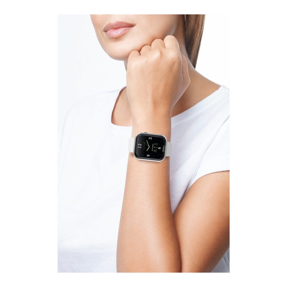 Orologio Smartwatch call withcase con cassa in Alluminio silver metal e quadrante nero con ABS e cinturino bianco in silicone. Dimensioni cassa 44x37x13 mm con Display 1.83” Color full touch. Circonferenza interna del cinturino: da 180 mm a 140 mm. Chiusura ad ardiglione in acciaio.Caratteristiche tecniche:Distanza di comunicazione: circa 10 metriWaterproof: IP67Versione Bluetooth: BT 5.1Batteria: 230 mAh Li-polymerSistemi compatibili: Android 5.0 o versioni superiori IOS 9.0 o versioni superioriFunzioni: Chiamata e notifica. Pedometro, Wrist sense, Calorie, Distanza, Cronometro, Freq. Cardiaca, Pressione sanguigna, Ossigenazione, Timer, Sleep monitor, Sveglia, Sedentary reminder, Sport , Avviso bere, Music remote contol, Meteo, Scatto, Ricerca smartphone, Sfondo personalizzabile.