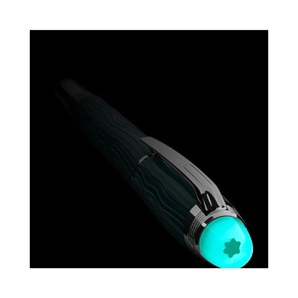 La collezione StarWalker PolarGreen dà vita alla bellezza delle aurore boreali. Sulla Terra, gli esseri umani possono guardare verso il cielo ed essere trasportati in regni di meraviglia assistendo a questo spettacolo grandioso. La cupola del cappuccio è realizzata in resina trasparente e brilla in luce bassa, ricordando le aurore danzanti e incantevoli del cielo notturno. Il motivo ondulato della resina preziosa verde scuro del cappuccio e del corpo cattura ammirevolmente lo splendore spettrale delle luci e la finitura opaca accentua i riflessi apparenti. La penna stilografica sfoggia attributi platinati. Il pennino in oro 14 K, accuratamente realizzato a mano, presenta un rivestimento rodiato elegante.