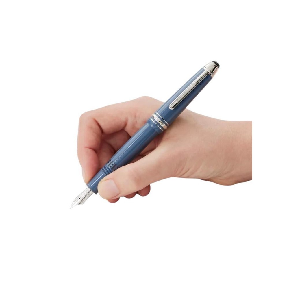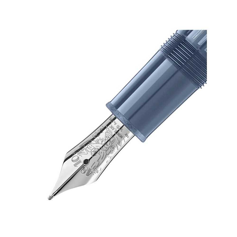 La stilografica Meisterstück Glacier LeGrand, caratterizzata da una pregiata resina blu-grigia, si ispira ai leggendari ghiacciai del Monte Bianco,Completa questo strumento da scrittura il pennino in oro massiccio Au585 / 14K con finitura rodio, decorato da una riproduzione del ghiacciaio Mer de Glace, simile a un drago, che domina la cima del Monte Bianco.